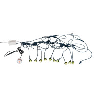 Un sistema completo de iluminación LED mini CS-401 para bañeras de hidromasaje, con diez luces de acero inoxidable de 19 mm, un pulsador AR-14A, una caja de control y una manguera de aire de 1 m, que ofrece múltiples modos de color y flexibilidad de instalación compacta.